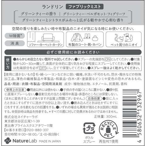 【ランドリンTEA ファブリックミスト グリーンティーの香りの商品詳細】
