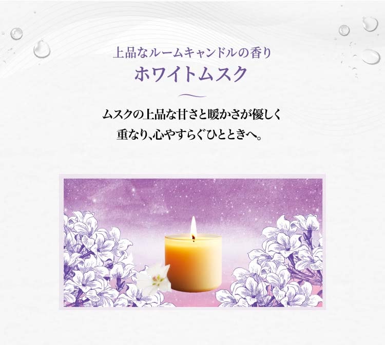 ●上品なルームキャンドルの香り、ホワイトムスクの香り:ムスクの上品な甘さと暖かさが優しく重なり、心やすらぐひとときへ。