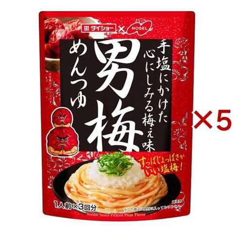 ●「男梅」の本格的で濃厚な梅干しの味わいを再現した、心にしみる梅ぇ味のめんつゆで、かつお・昆布の旨味を加えて生まれた、塩味・酸味・旨味・甘味のバランスが絶妙な商品です。