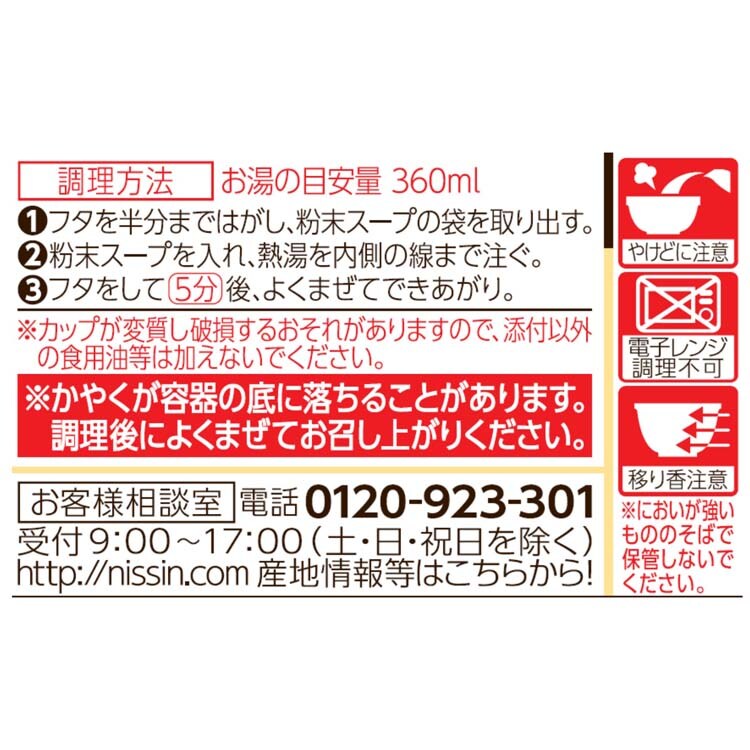※かやくが容器の底に落ちることがあります。調理後によくまぜてお召し上がりください。
