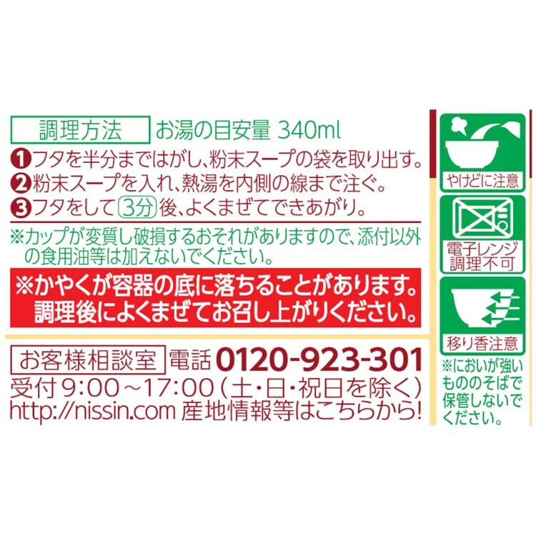 ※かやくが容器の底に落ちることがあります。調理後によくまぜてお召し上がりください。