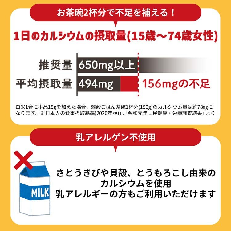 ●お米1合に本品大さじ1杯(約15g)を加えて炊くだけで、栄養素を摂ることができます。