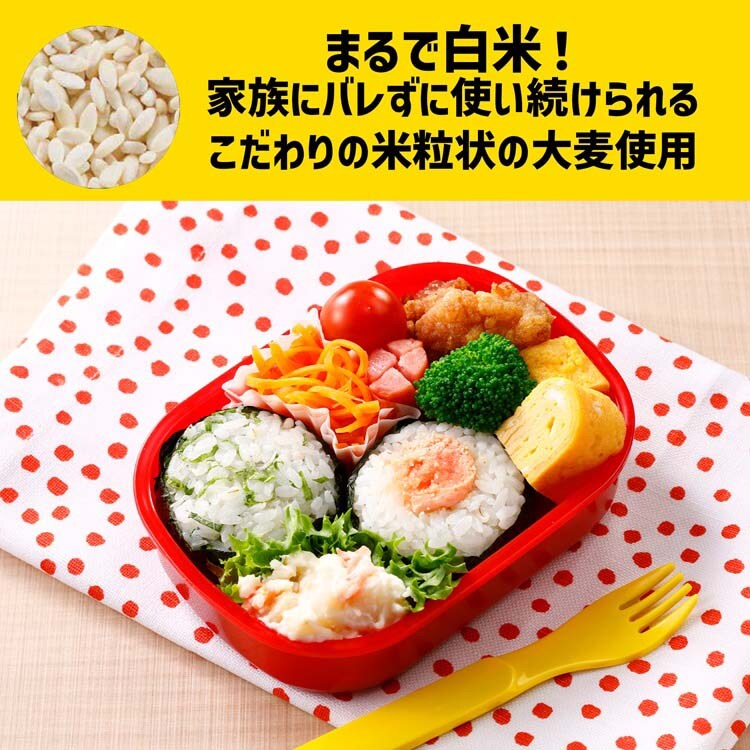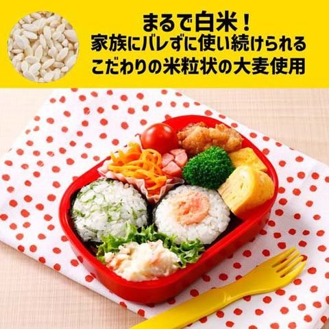 ●麦ごはん・雑穀ごはんが苦手なご家族でも食べやすく、白米の味・見た目を損なわないから続けやすい商品です。
