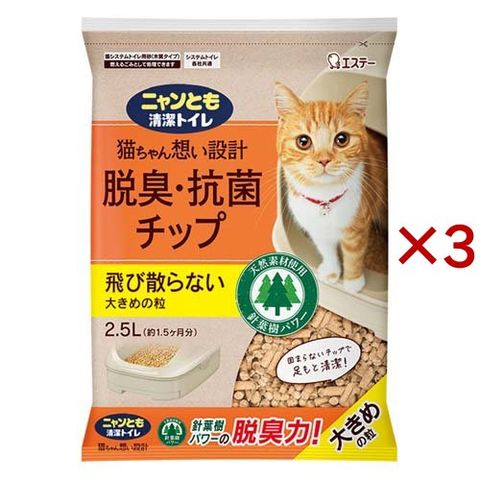 ニャンとも清潔トイレ 脱臭・抗菌チップ 大きめの粒 猫砂 (2.5L×3セット)
