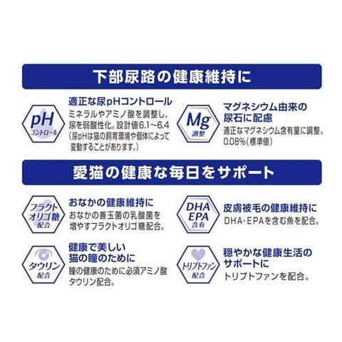 ●マグネシウム由来の尿石に配慮して、マグネシウム含有量0.08%(標準値)。