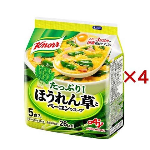 ●「とれて3日以内の国産新鮮たまご」と、指定農場でとれたざく切りのほうれん草が入った、ほうれん草とベーコンのスープです。
