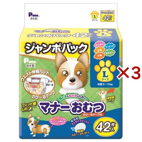 P・ワン 男の子&女の子のためのマナーおむつ のび~るテープ付き ジャンボパック L (42枚入×3セット)