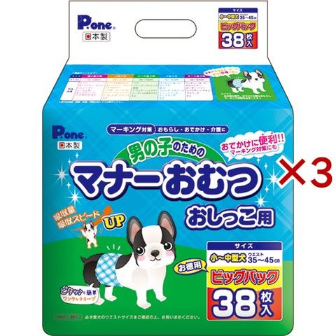 P・ワン 男の子のためのマナーおむつ おしっこ用 ビッグパック 小~中型犬 (38枚入×3セット)