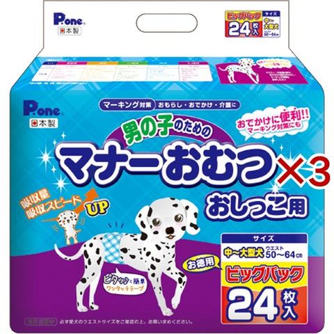P・ワン 男の子のためのマナーおむつ おしっこ用 ビッグパック 中~大型犬 (24枚入×3セット)
