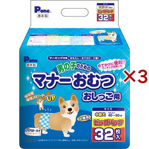 P・ワン 男の子のためのマナーおむつ おしっこ用 ビッグパック 中型犬 (32枚入×3セット)