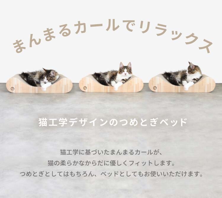 ●猫工学デザインのまんまるカールのつめとぎベッド