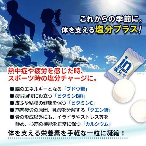●スポーツやアウトドア、お出かけ、屋外でのお仕事、その他、暑い季節の様々なシーンで、塩分補給にとても便利なタブレットキャンディです。