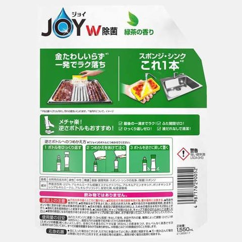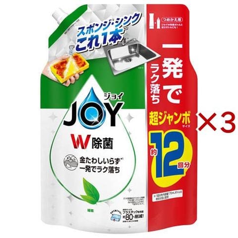 ジョイ W除菌 食器用洗剤 緑茶の香り 詰め替え 超ジャンボ (1550mL×3セット)