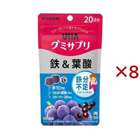 UHAグミサプリ 鉄&葉酸 20日分 (40粒入×8セット)