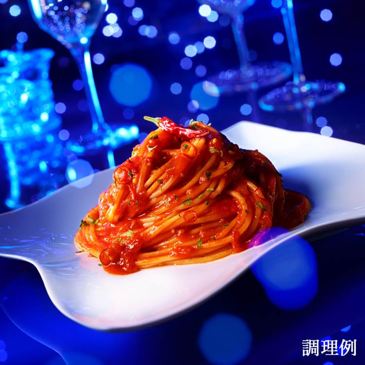 ●完熟トマトの旨味ににんにくとオリーブオイルの風味が重なる、唐辛子のピリッと辛いアクセントがきいたおいしさ。