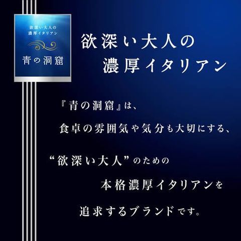 | ★ディ・チェコ 小麦 ★青の洞窟ボロネーゼ 牛肉、豚肉、鶏肉 ★青の洞窟カルボナーラ 卵、乳成分、豚肉 ★青の洞窟ズワイ蟹のトマトクリーム かに、小麦、乳成分、大豆、鶏肉 ★青の洞窟アラビアータ 小麦、大豆 ★青の洞窟ボンゴレビアンコ 大豆、りんご |