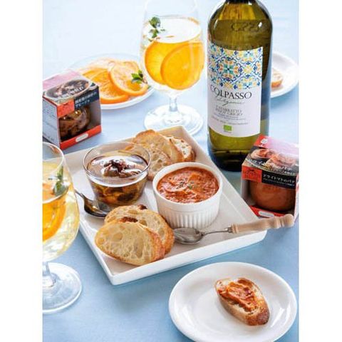| (国産鶏の砂肝のアヒージョ)植物油脂(国内製造、スペイン製造)、砂肝、赤いんげん豆、白いんげん豆、食塩、香辛料、乾燥たまねぎ、ローストガーリック/香辛料抽出物、(一部に乳成分・小麦・大豆・鶏肉・豚肉を含む) (国産鶏レバーのパテ)鶏レバー(国産)、たまねぎ、鶏肉、植物油脂、夏みかん果汁、ミルポワ、卵黄、夏みかん果皮、食塩、ブランデー、砂糖、卵黄油、酵母エキスパウダー、香辛料/増粘剤(加工でん粉、キサンタンガム)、調味料(アミノ酸)、(一部に卵・大豆・鶏肉を含む) |