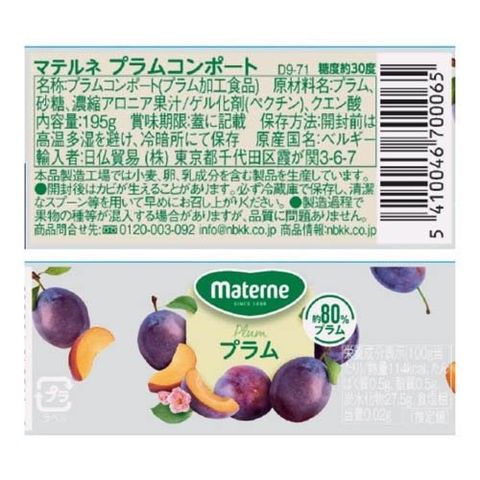 | プラム、砂糖、濃縮アロニア果汁/ゲル化剤(ペクチン)、クエン酸 |
