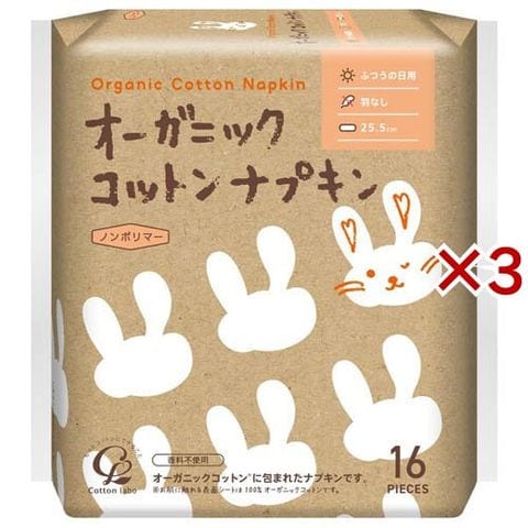 オーガニック コットンナプキン ふつうの日用 羽なし 25.5cm (16個入×3セット)