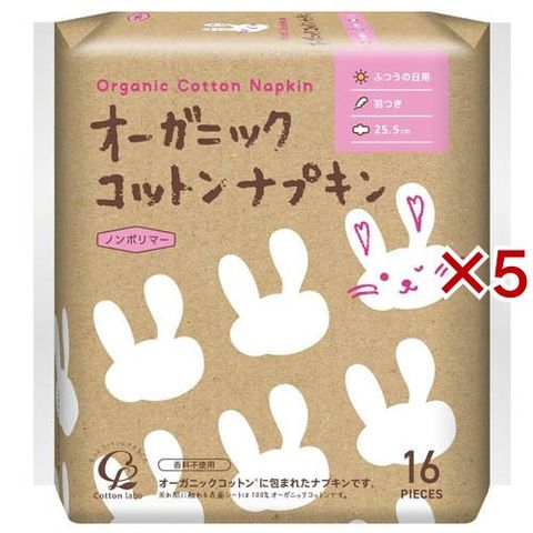 オーガニック コットンナプキン ふつうの日用 羽つき 25.5cm (16個入×5セット)