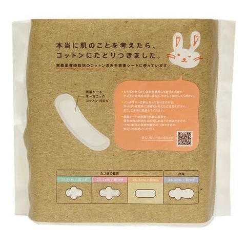 | 表面シート:コットン(オーガニックコットン100%) 色調:ホワイト ※本品の表面シートは漂白処理を行っておりますが、身体と環境にやさしい過酸化水素漂白を採用しています。 長さ:25.5cm |