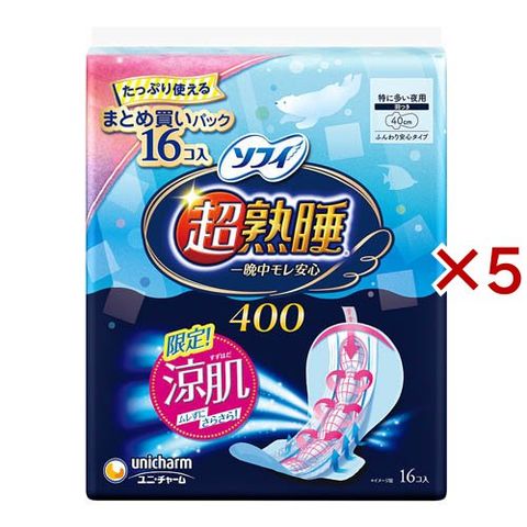 ソフィ 超熟睡ガード 涼肌 夜用 羽つき 400 ナプキン (16枚入×5セット)