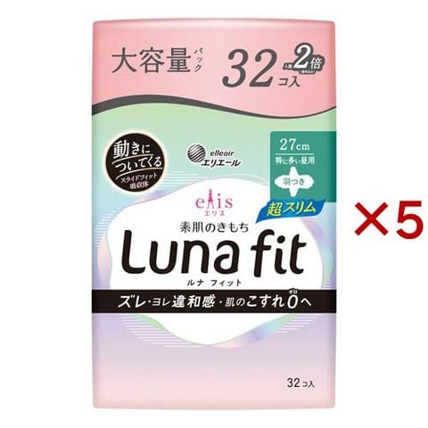 エリス 素肌のきもち ルナフィット 超スリム 特に多い昼用 羽つき 27cm (32枚入×5セット)