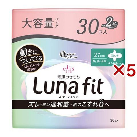 エリス 素肌のきもち ルナフィット 特に多い昼用 羽つき 27cm (30枚入×5セット)