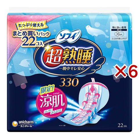 ソフィ 超熟睡ガード 涼肌 夜用 羽つき 330 ナプキン (22枚入×6セット)