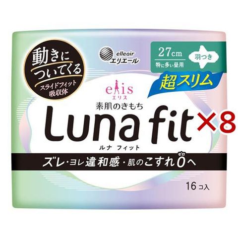 エリス 素肌のきもち ルナフィット 超スリム 特に多い昼用 羽つき 27cm (16枚入×8セット)