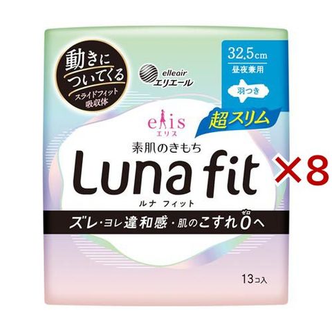 エリス 素肌のきもち ルナフィット 超スリム 昼夜兼用 羽つき 32.5cm (13枚入×8セット)