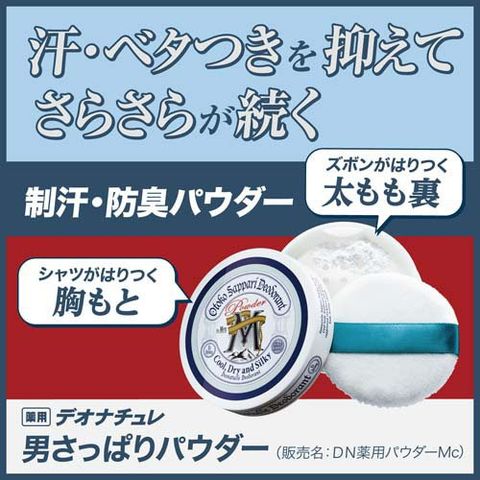 ●男の汗のベタつき・ニオイに効く!「薬用男デオナチュレ」シリーズの、ボディ用クール&制汗・防臭パウダー