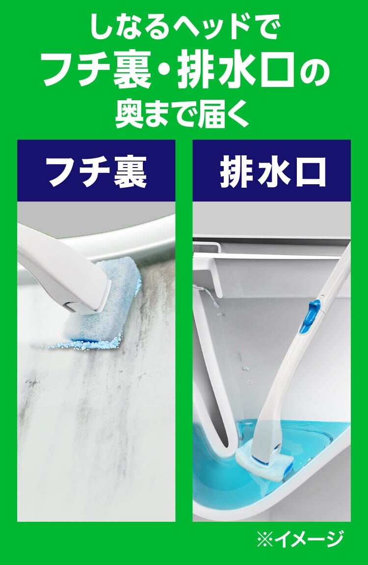 ●本体の弓形カーブ形状で見えないふち裏にもしっかり届き、ゴシゴシしっかり洗えて汚れを落とす!