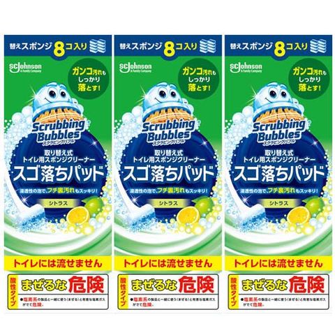 スクラビングバブル 取替式トイレ用スポンジクリーナー スゴ落ちパッド 替え (8個入×3セット)