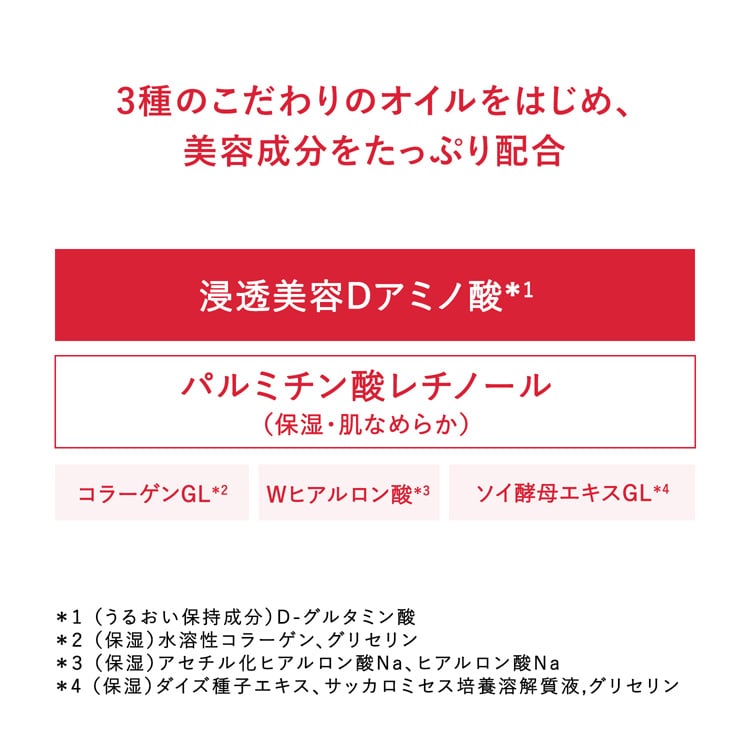●濃厚オイルがキメの奥までじゅわ~っと浸透。もちっとハリつや溢れる肌へ。