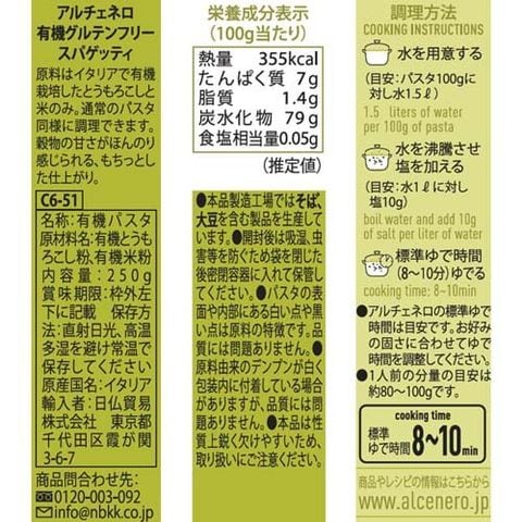 【アルチェネロ 有機グルテンフリー スパゲッティ 1.6mmの商品詳細】