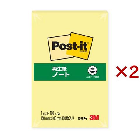 ポスト・イット 再生紙 スタンダード ノート659 イエロー 659RP-Y (100枚入×2セット)