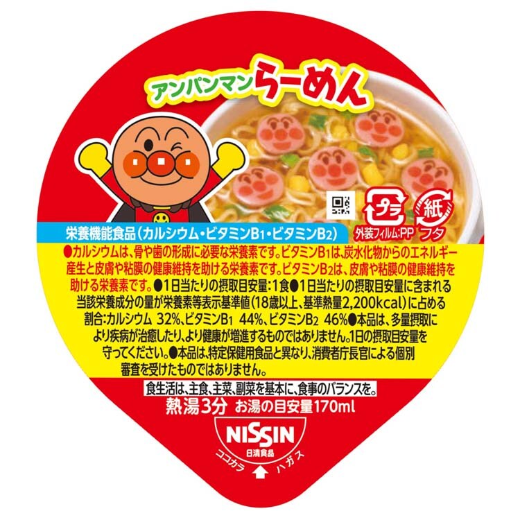 ●お子様が食べやすいあっさりとした優しい味で、具材はたまご、ねぎ、アンパンマンのなると入り。