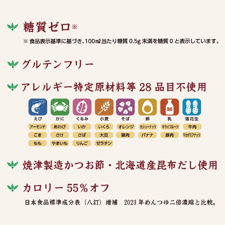 ●糖質ゼロで、いろいろな料理にお使いいただける万能つゆ(濃縮タイプ)です。