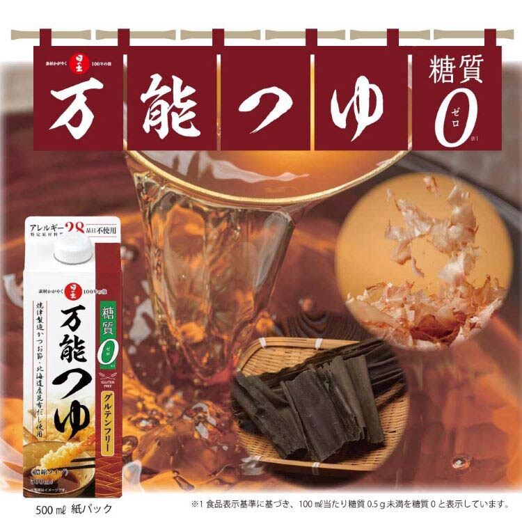 ●今回の万能つゆ糖質ゼロは、日の出糖質ゼロ・オフシリーズをご購入頂いているお客様からの糖質制限しながらでも、「思い切り飲み干したい」「つけ汁にいっぱい使いたい」とのお声から生まれました。