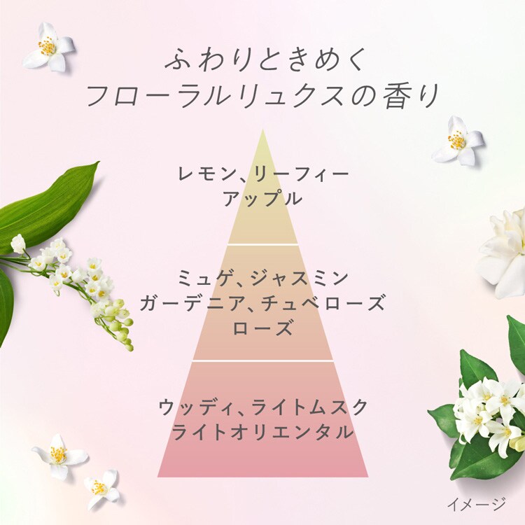 水、ラウレス硫酸アンモニウム、エタノール、ジステアリン酸グリコール、ラウリルヒドロキシスルタイン、ラウラミドプロピルベタイン、リンゴ酸、ヒマワリ種子油、ラノリン脂肪酸、アルギニン、アスパラギン酸、グリシン、アラニン、セリン、バリン、イソロイシン、プロリン、トレオニン、ヒスチジン、フェニルアラニン、PCA、PCA-Na、乳酸Na、コハク酸2Na、コカミドMEA、グアーヒドロキシプロピルトリモニウムクロリド、イソデシルグリセリルエーテル、ミリスチルアルコール、ステアリルアルコール、ポリクオタニウム-10、ポリクオタニウム-52、PPG-2ヒドロキシプロピルトリモニウムセルロース、PPG-3カプリリルエーテル、PPG-7、ラウレス-4、ラウレス-4カルボン酸Na、ラウレス-16、ラウレス-23、ラウレス硫酸Na、ステアロキシプロピルジメチルアミン、(ビスイソブチルPEG-14/アモジメチコン)コポリマー、ジメチコン、水酸化Na、安息香酸Na、ベンジルアルコール、フェノキシエタノール、香料