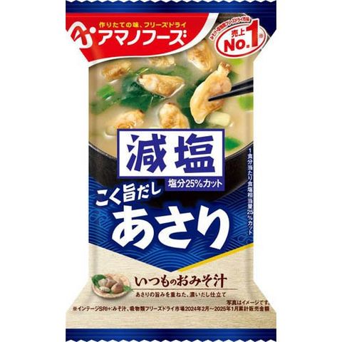 ※「いつものおみそ汁 あさり」と比べ、1食分当たり食塩相当量25%カット。塩分の気になる方にも、毎日おいしくお召し上がりいただけます。