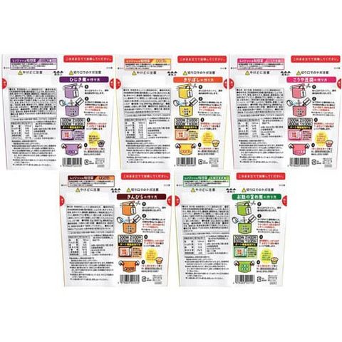 ひじき煮/53g×1袋、きりぼし/53g×1袋、こうや豆腐/58g×1袋、きんぴら/52g×1袋、お麩の含め煮/56g×1袋 計5種5袋