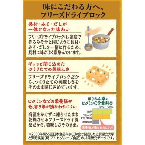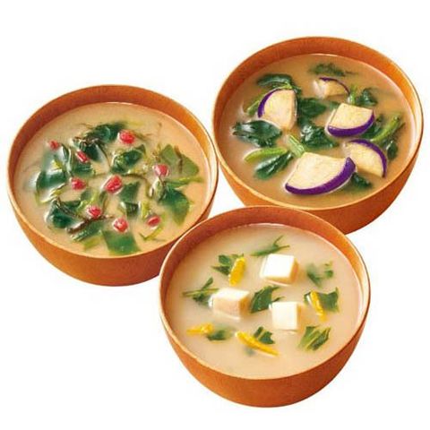 | ★香りゆず:豆腐(国内製造)、米みそ、麦みそ、みずな、風味調味料、ゆず果皮、でん粉、かつおエキス調味料、酵母エキスパウダー、ゆずパウダー、こんぶ粉末/調味料(アミノ酸等)、安定剤(加工デンプン)、凝固剤、酸味料、酸化防止剤(ビタミンE)、香料、(一部に小麦・さば・大豆・魚醤(魚介類)を含む) ★香りうめ:米みそ(国内製造)、塩蔵もずく、めかぶ、調合みそ、調味梅漬(塩蔵梅、梅酢、その他)、梅肉ペースト、風味調味料、こんぶ、乾燥わかめ、こんぶ粉末/調味料(アミノ酸等)、着色料(紅麹、アカキャベツ)、酸味料、酸化防止剤(ビタミンE)、香料、(一部にさば・大豆を含む) ★香り山椒:揚げなす(ベトナム製造)、調合みそ、米みそ、ほうれんそう、風味調味料、でん粉、香辛料、こんぶ粉末/調味料(アミノ酸等)、酸化防止剤(ビタミンE)、酸味料、香料、(一部に乳成分・さば・大豆・魚醤(魚介類)を含む) |