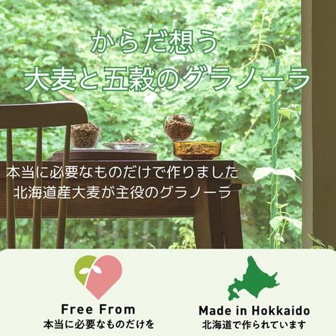| オートミール(北海道製造)、全粒大麦(北海道産)、てんさい糖(てんさい(北海道産))、食物繊維、乾燥果実(クランベリー、グリーンレーズン)、ココナッツ、玄米(北海道産)、大豆(北海道産)、全粒小麦(北海道産)、コーングリッツ、オリゴ糖含有てんさい糖蜜(てんさい(北海道産))、ビターキャラメルパウダー(乳成分を含む)、食塩、カカオマス、麦芽エキス/グリセリン、乳化剤、酸化防止剤(ビタミンE) |