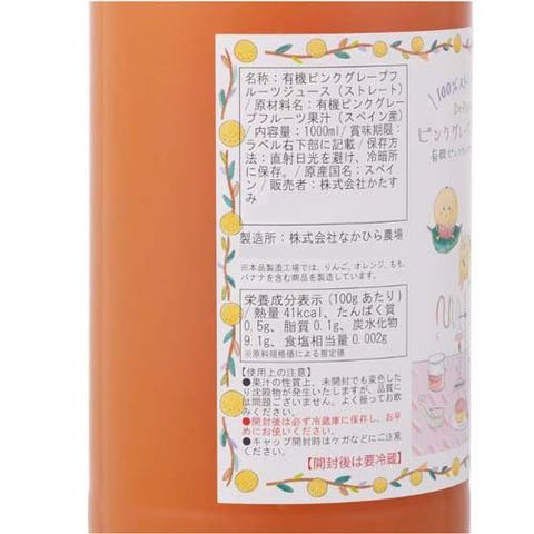 【有機ピンクグレープフルーツジュース ストレート100%の商品詳細】
