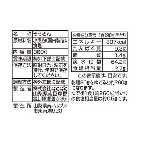 ●南アルプス山系の水を使用し、山梨県南アルプス市で製造した乾麺です。