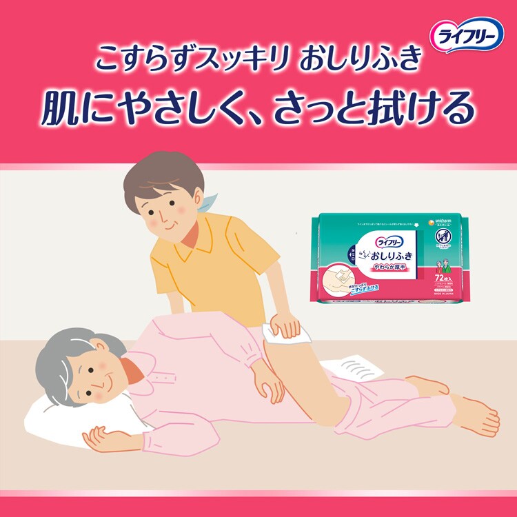ライフリー らくらくおしりふき やわらか厚手 介護用ウェットティッシュ (72枚入×12セット)