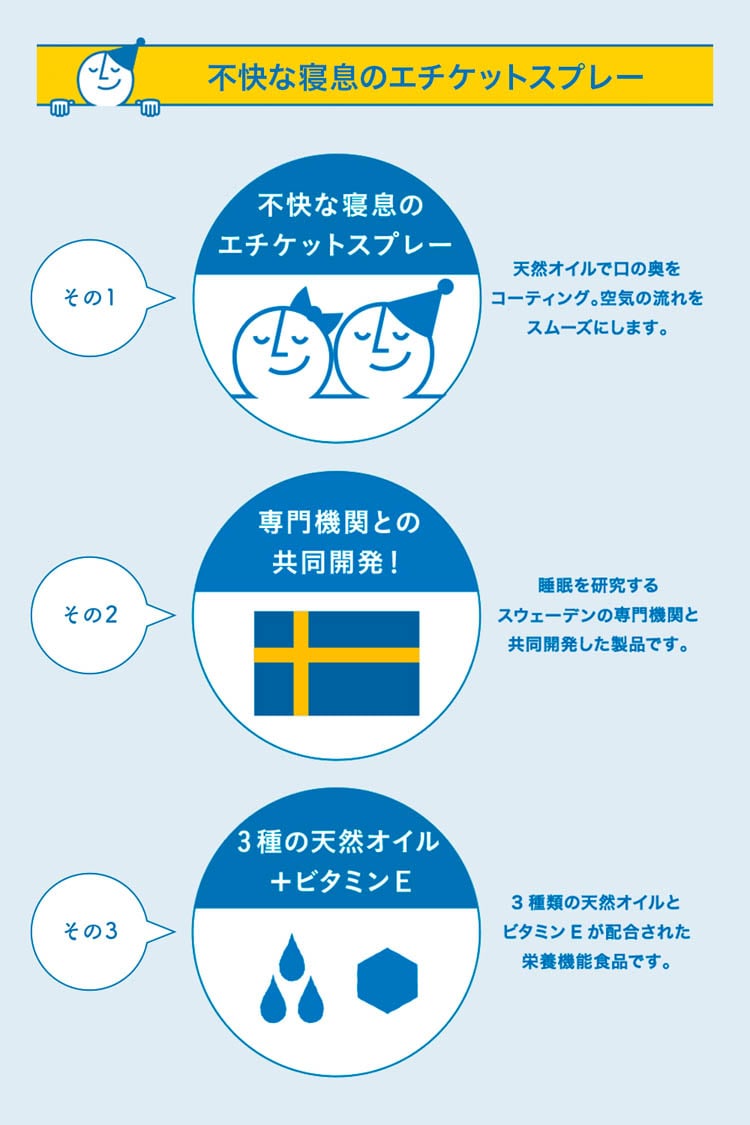 ●「寝息にマナーを」不快な寝息のエチケットスプレーです。