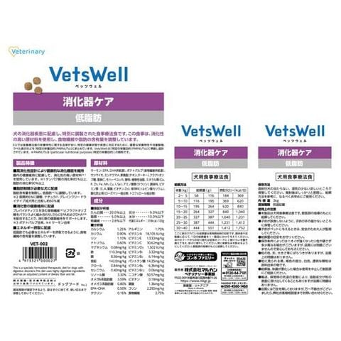 ●「VetsWell 消化器ケア 低脂肪」は犬の消化器疾患に配慮し、特別に調製された食事療法食です。